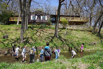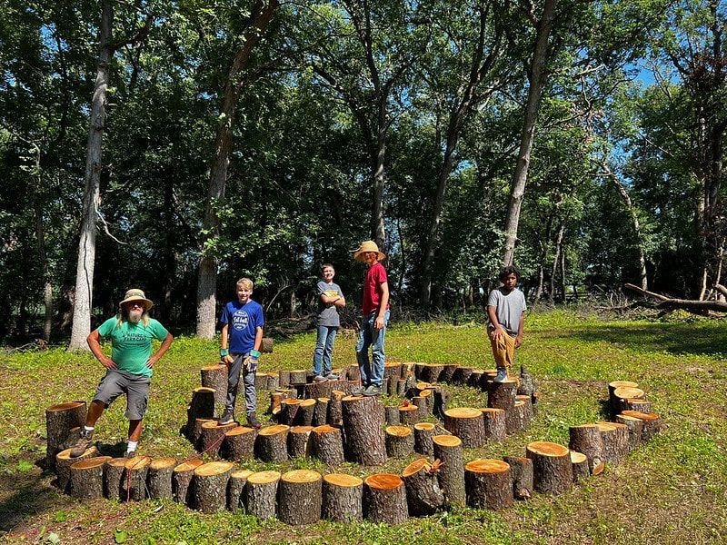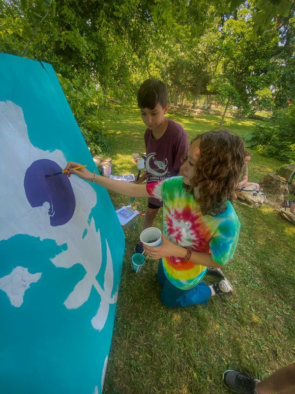 Day campers gather at the both the Lodge and Main Farm Gathering Space and have access to acres of outdoor exploration, hiking trails, hammock village, and a labyrinth maze built by past campers! They can toast marshmallows around the firepit and splash in the creek, making the most of nature's playground.